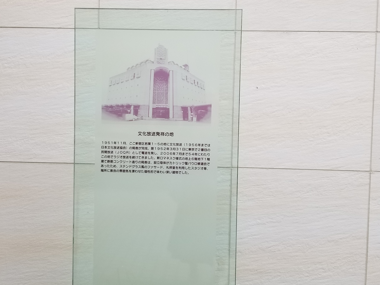 文化放送は、関東地方を対象としたラジオ放送局で、2006年までこの地に本社がありここからラジオ放送がされていた。