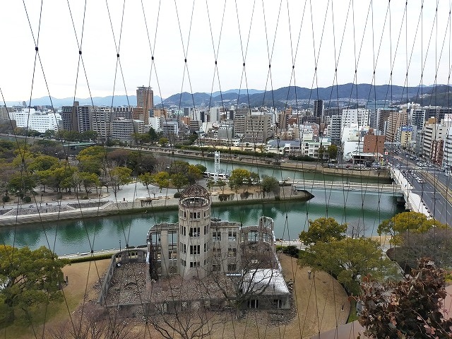 あまり高くないですが、広島市街が一望でき、広島城、原爆ドーム、宮島の弥山など見えます。でも、網がかかっているので、1階降りたおりづる広場の方がガラス張りで遮るものがないので、見晴らしが良かったです。爆心地が見えたり、原爆ドームを上から見ることができます。