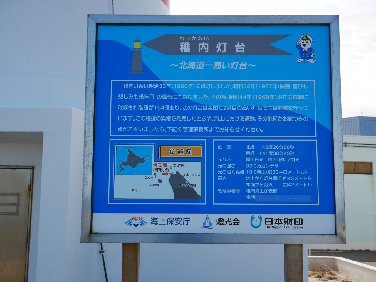 稚内観光協会のガイドブックによると、高さは42.7メートルで、赤と白色なのは、雪の中で目立つようにしたからとのことです。