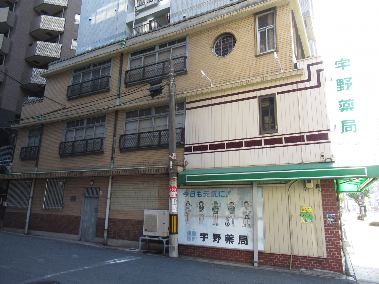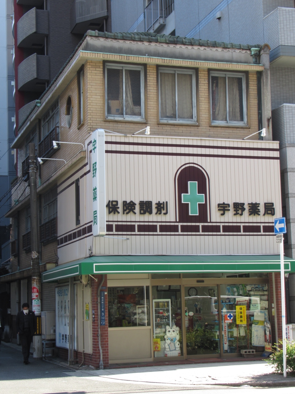 宇野薬局は、大阪市中央区徳井町2丁目にある薬局で、道路を挟んで斜め向かいに大阪商工会議所があります。