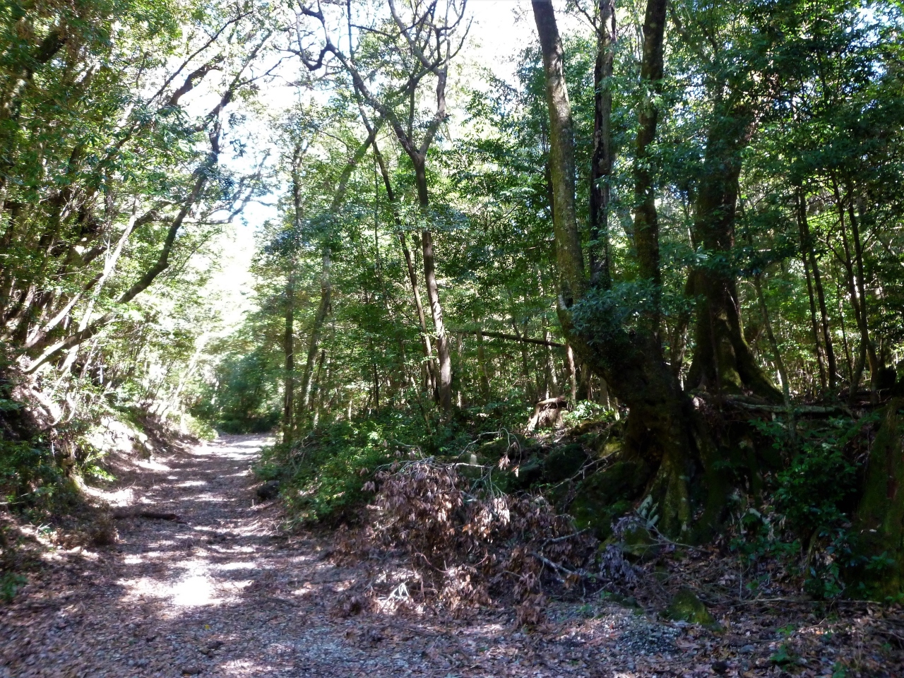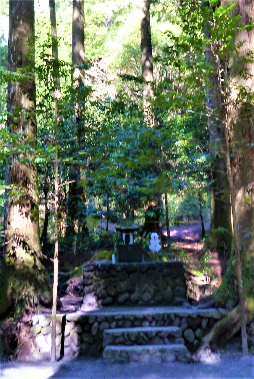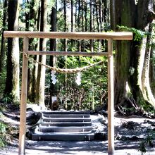 霧島神宮(国宝;本殿/幣殿/拝殿、主祭神;瓊瓊杵尊)で参拝し、境内の登山道(高千穂嶽道)を歩いていくと`白木の鳥居`がありました…<山神社;祭神は大山祇神>で、霧島神宮の相殿神;瓊瓊杵尊の后 木花開姫尊の父親です☆ 霧島神宮(婿;瓊瓊杵尊,娘;木花開姫尊)の裏手に見守っていますね♪