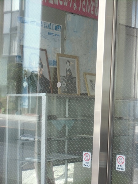 道標に説明などは書かれていませんが、この後ろにある「建物が「おりょう会館」という多目的ホールで、その入口におりょうさんの写真等資料が並べられています。