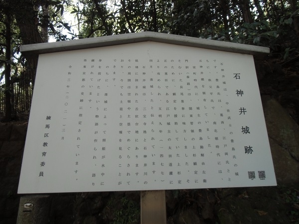 説明板によると、石神井城は中世武士の豊島氏の城です。
