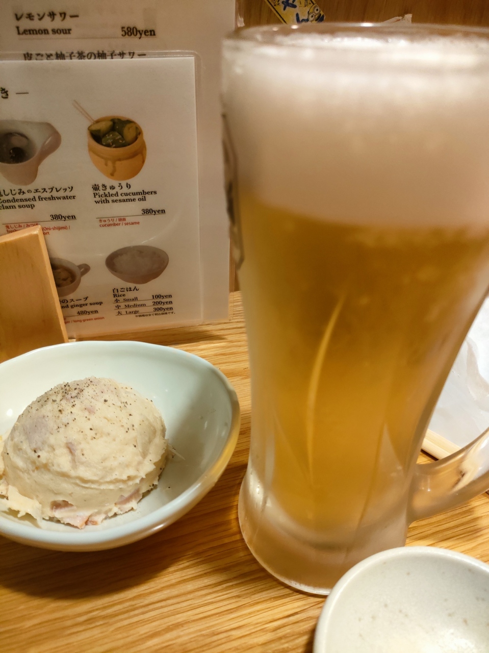 カウンター席とテーブル席2つのこじんまりとしたお店です。調理をするスタッフさんと提供するスタッフさん2人で忙しそうに仕事をしています。銀座八丁目の良い立地で外国からのお客様が多く来ていました。