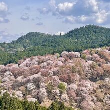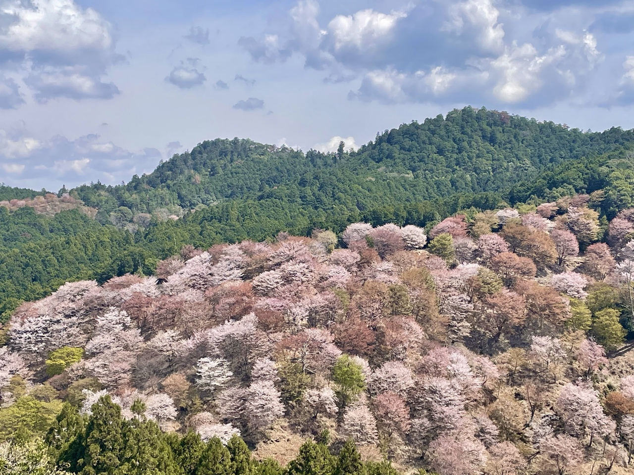 中千本あたりから上千本までは、桜の中を歩いているように頭の上にずっと桜の花が咲いていました。中千本あたりでは遠くに桜を見下ろすこともでき、近くで桜を見ることもでき、色々なピンク色の桜の中を歩くことができます。