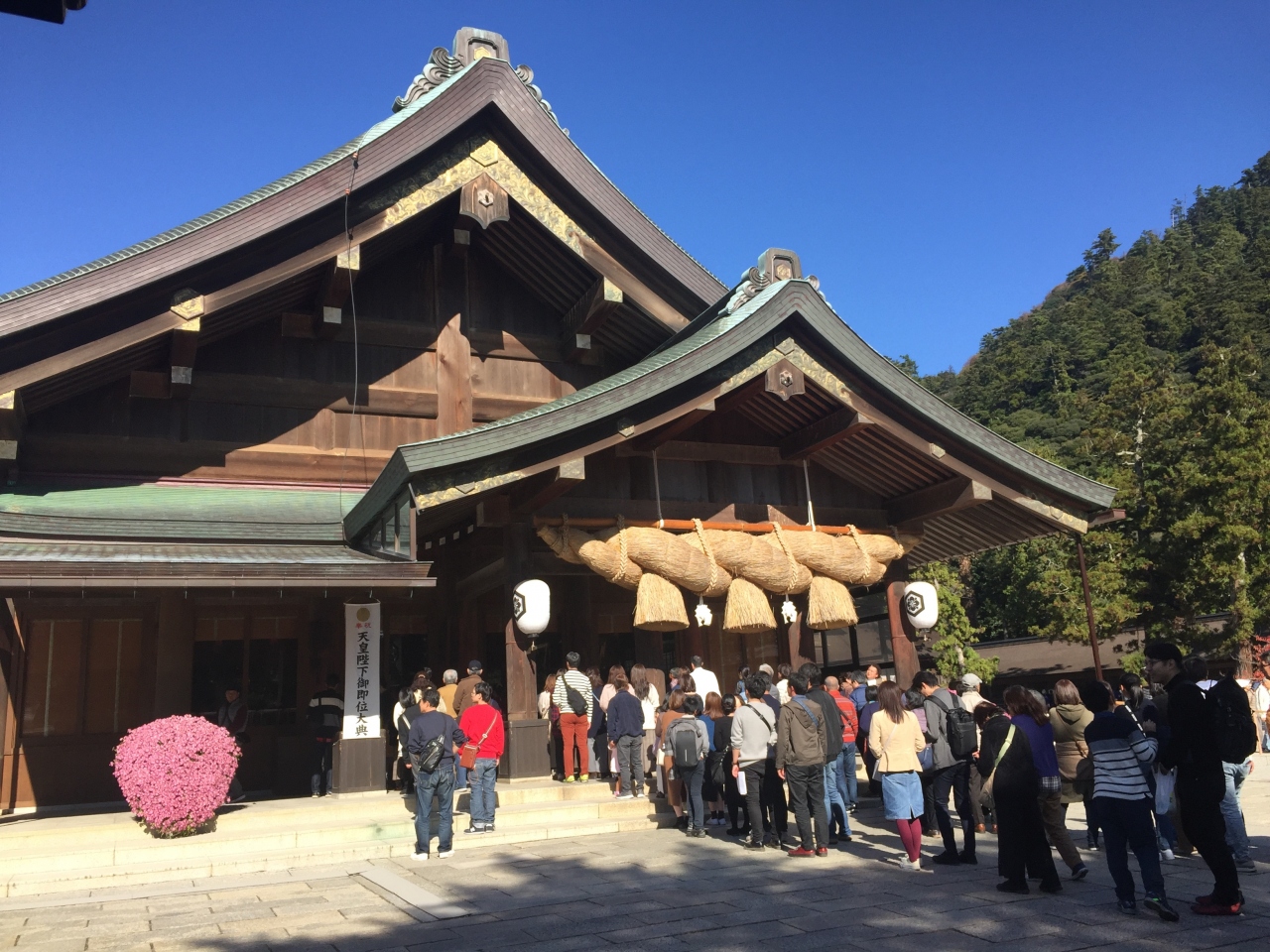 山陰を代表する観光名所で縁結び(恋愛だけでなく、仕事、友人との縁も)の神様として、また因幡のしろうさぎ神話で有名な出雲大社への訪問です。出雲市駅からは時間が限られていたのでタクシーで手っ取り早く移動で30分くらいです。境内はとても広く、パワースポット目当てに散歩するにも良い場所です。また、大しめ縄は日本最大級で見応えがあります。帰りは表参道である神門通りで休憩して、お土産を購入して帰りました。また、行きたいですね。