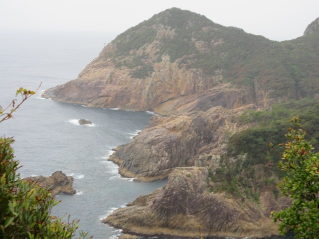 高知県の足摺の観光をしましたが、そのあと、ドライブでこちらの観光もしました。日本で最初に黒潮が接岸するという場所です。鵜の岬という展望所から見る景色がいいとのことで訪問しました。全体像が見えていいです。近くまで移動すると神社などもある岬です。