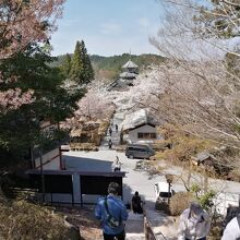 後醍醐天皇が樹立した南朝の皇居跡です。金峯山寺蔵王堂の西側の階段を降りたやや奥まった場所です。実城寺を皇居にし、改められた寺号が金輪王寺。現在は公園として整備されて南朝妙法殿が建てられ、後醍醐天皇その他南朝三帝の歌碑もあります。