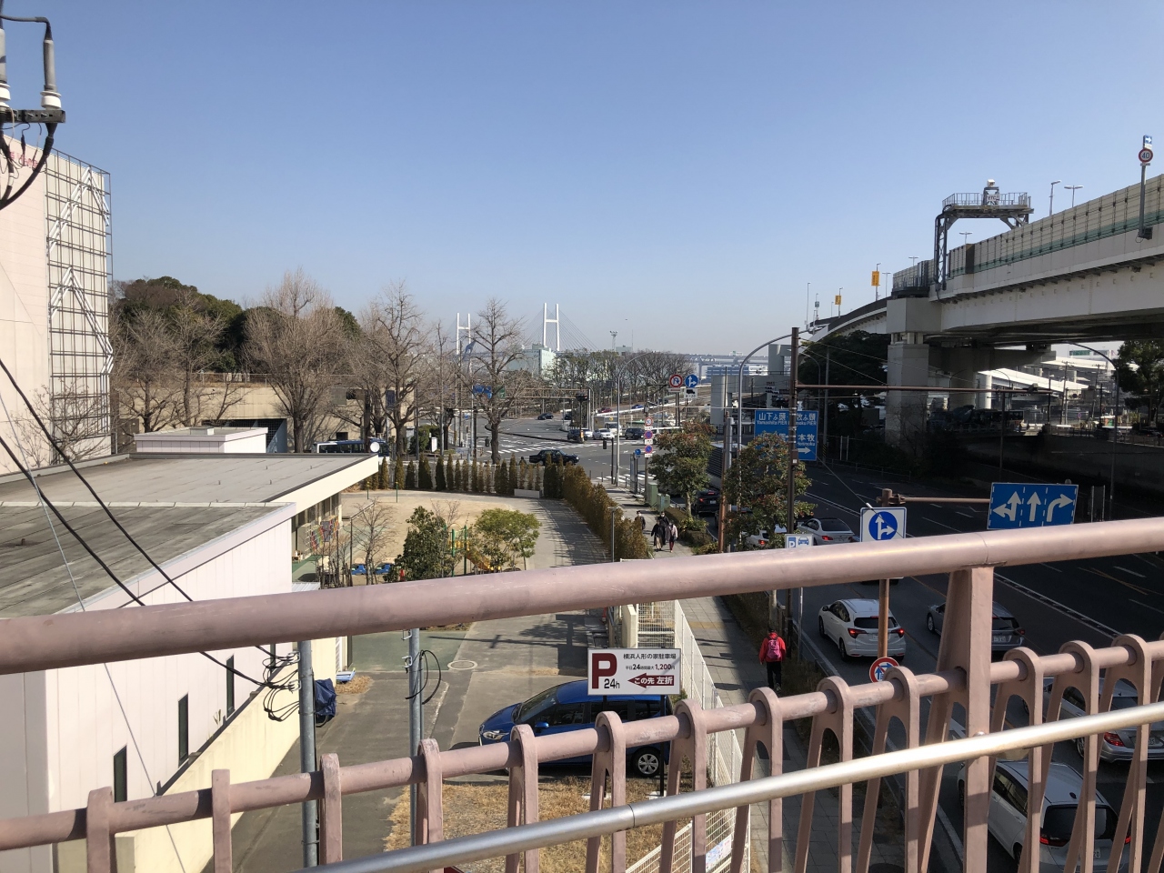 横浜人形の家に行った際、すぐ前がフランス橋でした。歩道橋になっている橋は、港の見える丘公園に続いていて、公園までスムーズにアクセスできます。橋の上からは、横浜ベイブリッジや横浜マリンタワーが綺麗に見えました。真上には、首都高が通っています。