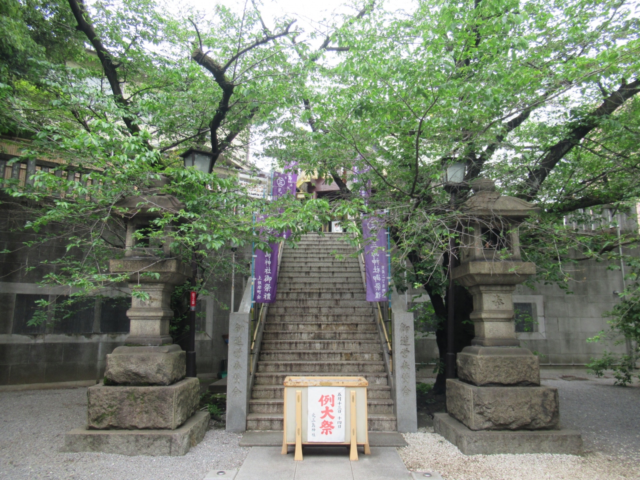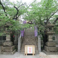 鶯谷駅北口からラブホ街を通って1分ほどのところに建つ神社です。桜の葉に覆われた20段ほどの階段を上がったところに社殿があり、階段下には神楽殿が建っています。神社内にある縁起によると、1281年に創建されたあと、江戸時代に熊野神社と合祀したと記されています。神社そのものは立派な社殿を持つ神社ですが、ラブホが乱立するエリアに建っていて、神様も落ち着かないのではと思ってしまいます。