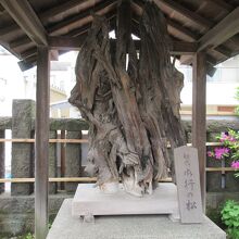 鶯谷駅北口から7分ほどの御行の松通りに建つ西蔵院から、さらに通りを100mほど行ったところに不動尊が祀られています。その一角に江戸時代から根岸の松として親しまれ、歌川広重の錦絵にも描かれた松が植えられています。初代の松は天然記念物にも指定された大きな松だったようですが、現在の松は4代目で初代ほど大きくがありません。松の横には初代の松の根が大切に保存されています。今後の生育が楽しみな4代目、御行の松です。