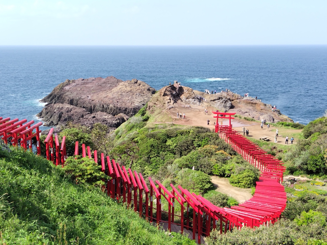 角島大橋と合わせて訪れました。海に突き出た岩場から鳥居が続く絶景です。海に突き出したところには潮吹きがあり、波が打ち寄せるたびに岩場から波が吹き上げられ、虹がかかっていました。駐車料金は300円です。