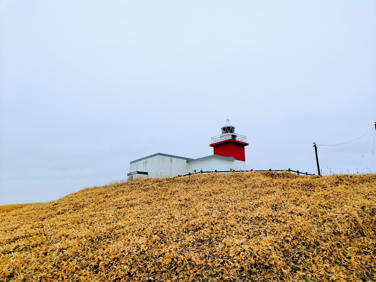 根室の景勝地花先岬に建つ赤と白に塗られた四角形の灯台は日本の灯台50選にも選ばれています