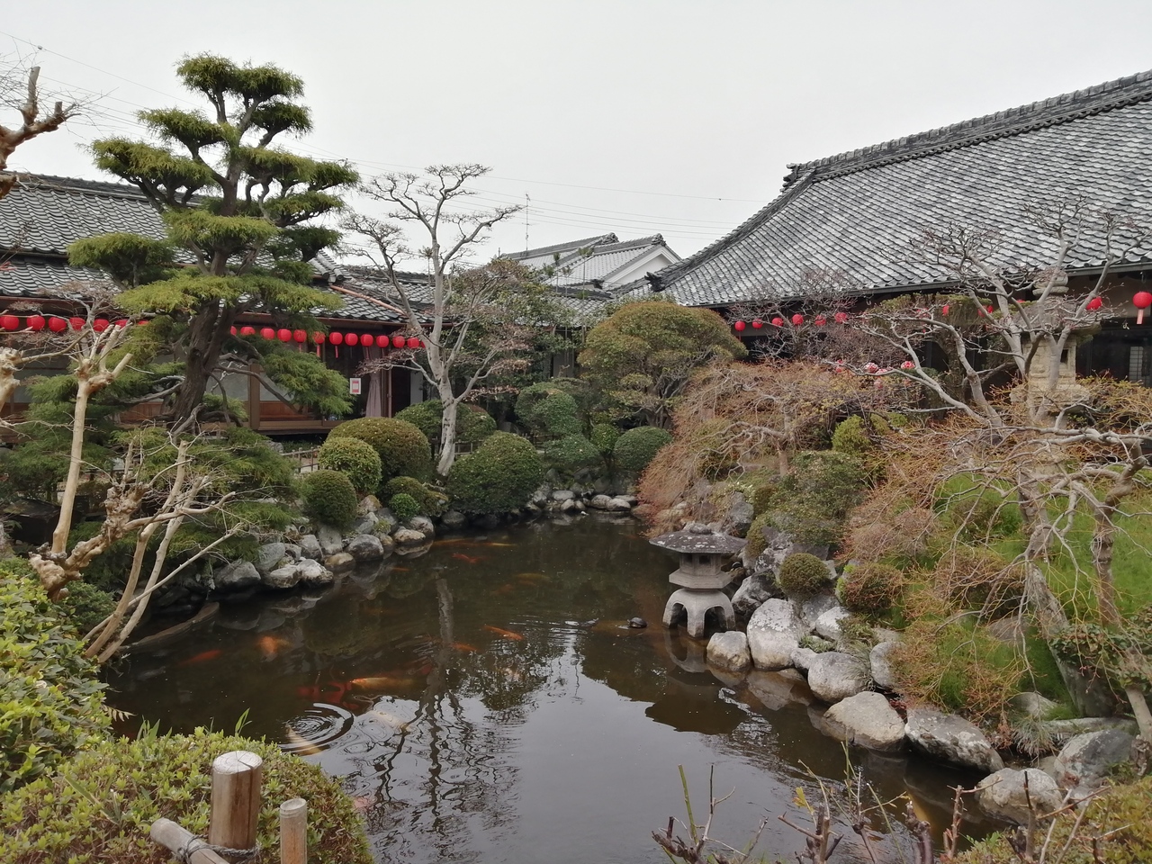 バラと風鈴で有名なお寺のようですが、訪れたのは3月下旬。時期的に外れているのかどちらも見られませんでした。その代わり、境内を埋め尽くす赤い提灯。これはこれで見応えがありました。境内の奥には美しい「円空庭」。池には優雅に泳ぐ鯉の姿が…。また各所にはメダカの水槽…。なんか情報量が多くて盛り盛りといった感じ。いつ行っても楽しませてくれるエンターテイメントなお寺だと思います。