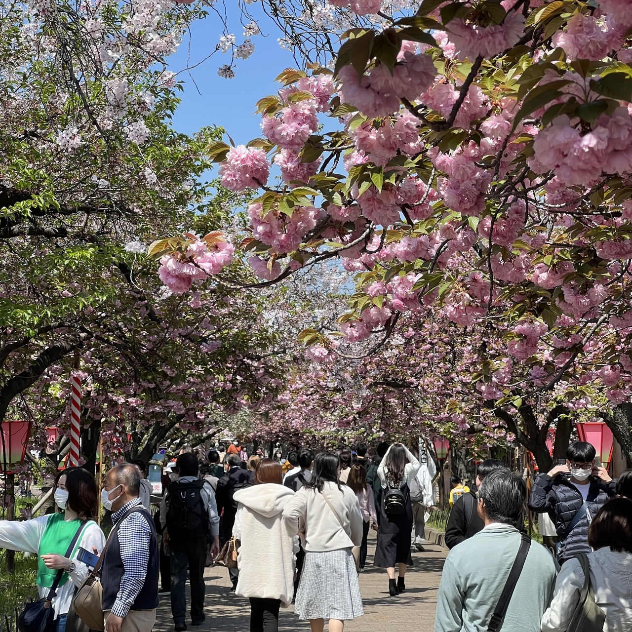 ソメイヨシノからやや遅れて八重桜が満開になる頃、今年も大阪造幣局の桜の通り抜けが開催されました。