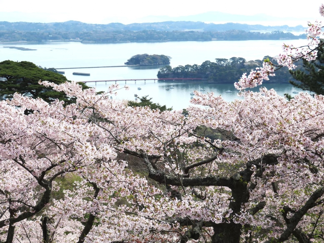 - 桜の花と松島湾の取り合わせが素晴らしい景色