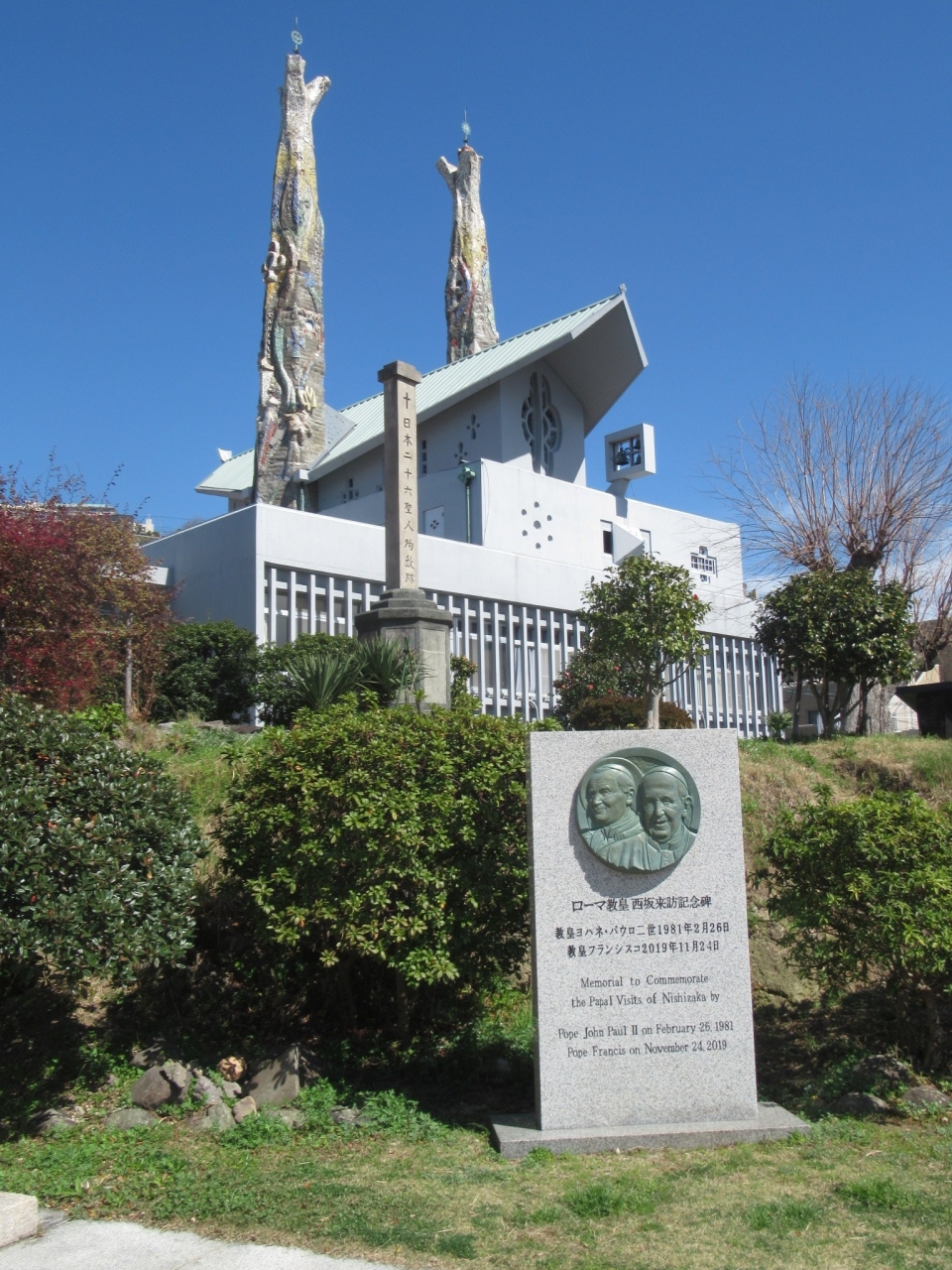 二十六聖人記念館のすぐ裏にあり、外観がダイナミックで、ガウディの建築物のようです。大きい建物なのに入り口がちょっと分かりにくくて、躊躇します。
