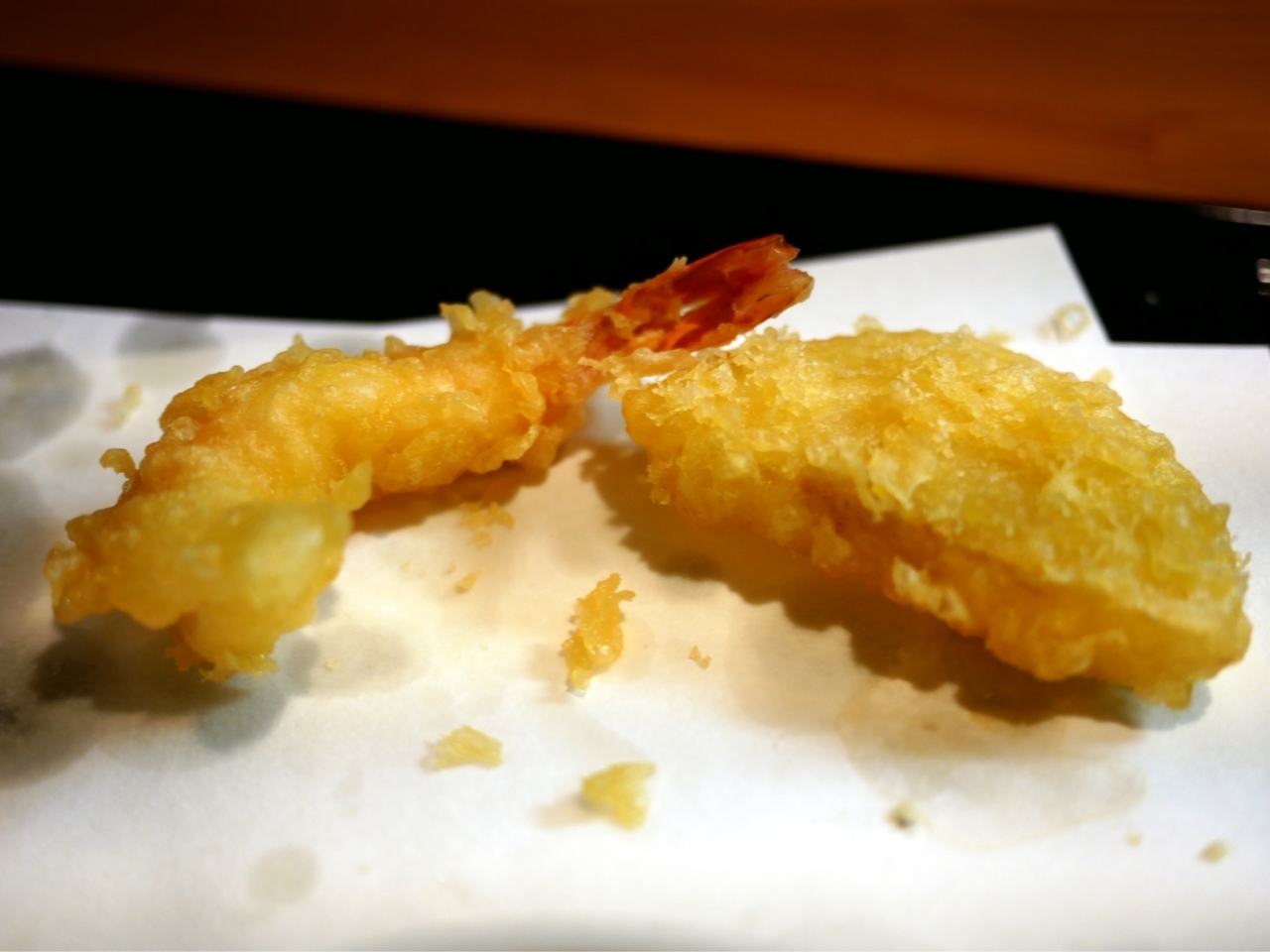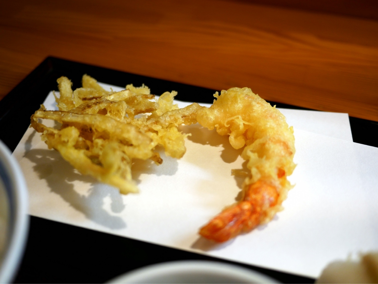 職人さんが丁寧に揚げられる天ぷらは、カラッと揚がっていて、絶妙な仕上がり。特に、厚みがしっかりある海老と瑞々しい茄子の天ぷらが美味しかった。