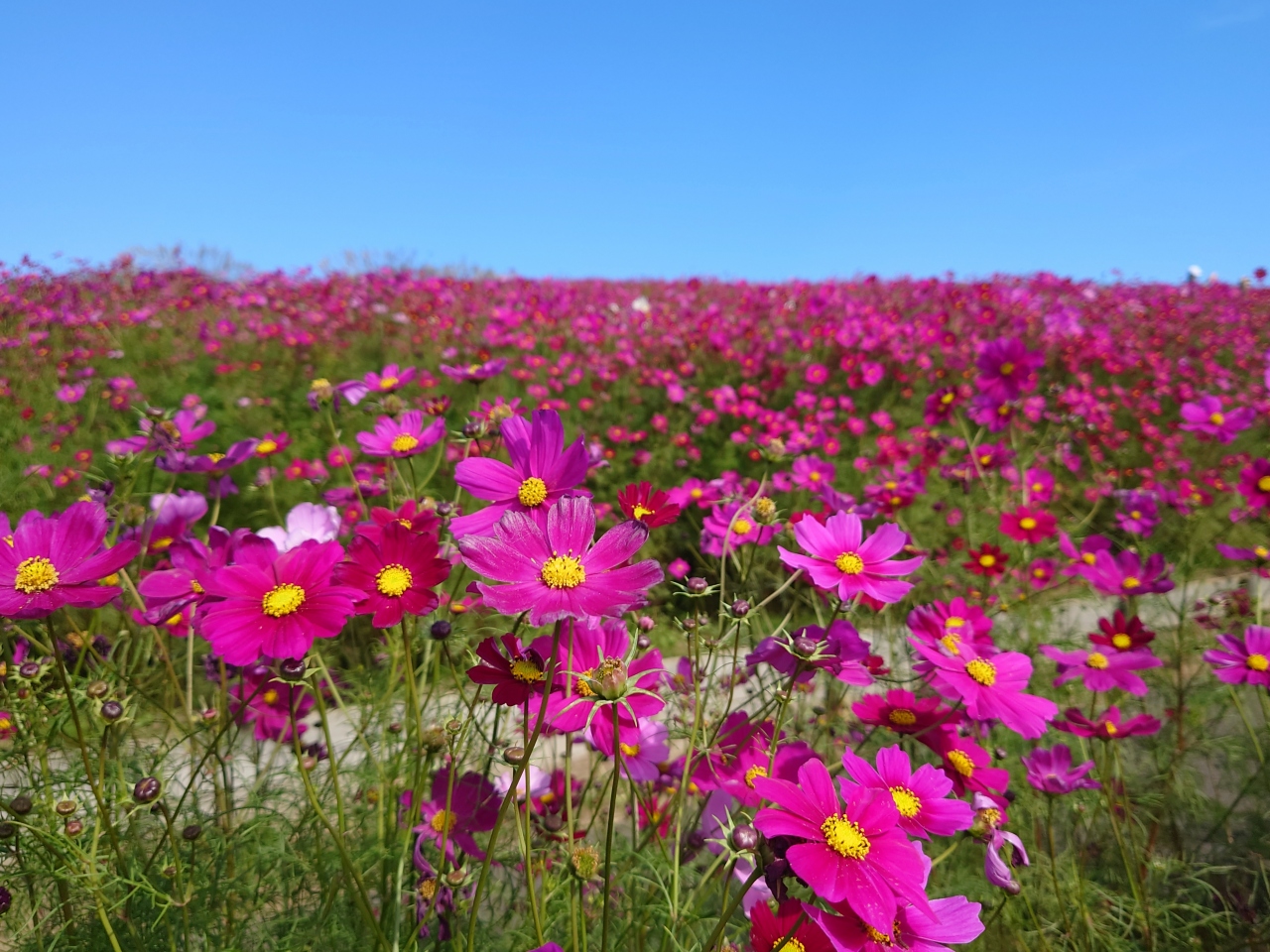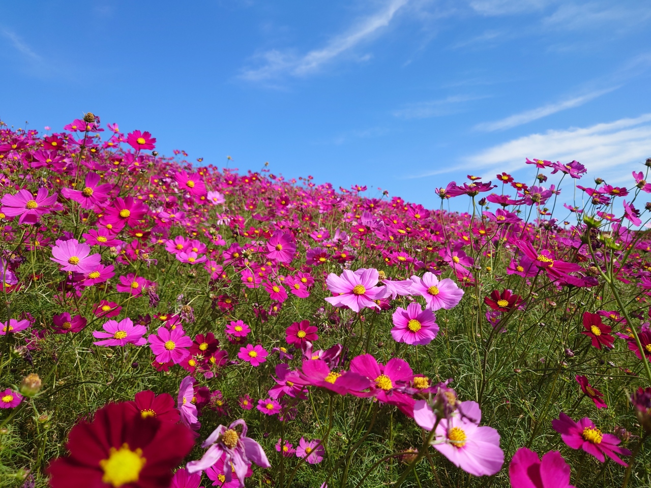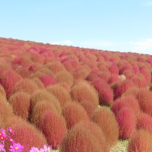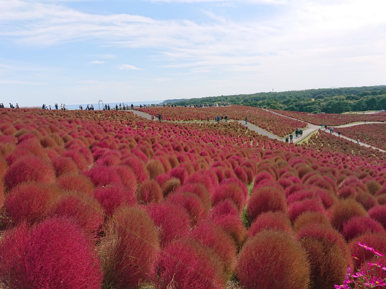 ひたち海浜公園にコキアを見に行きました。コキアはちょっと遅めで、赤コキアから黄金コキアに変わりつつあるところでした。コスモスが真っ盛りでなかなか良いコンビネーションでした。この日は天気も良く青空に花が映えて大変きれいでした。