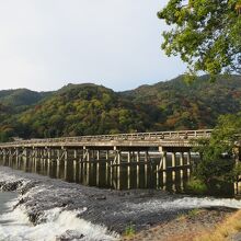 桂川の両岸を行き来するための重要な交通路として造られた全長155メートルの渡月橋は嵐山のシンボル的な存在であり、承和年間(834~848)に僧道昌によって架橋したのが最初とされています。亀山上皇が、橋の上空を移動していく月を眺めて「くまなき月の渡るに似る」と感想を述べたことから渡月橋と名付けられました。1606年に角倉了以によって上流の保津峡の開削工事と同時期に付け替えられ、現在のものは1934年6月製の鉄筋コンクリート桁橋です。