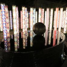 嵐電嵐山駅の近くにある観光スポットで、600本もの友禅の布をガラスのポールに装飾したものが立っています。昼間の様子も素敵ですが、夜のライトアップ時にはその美しさがより際立ち幻想的な雰囲気さえあります。