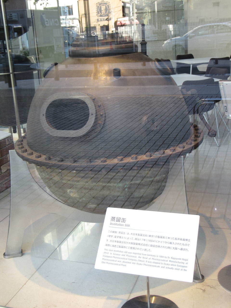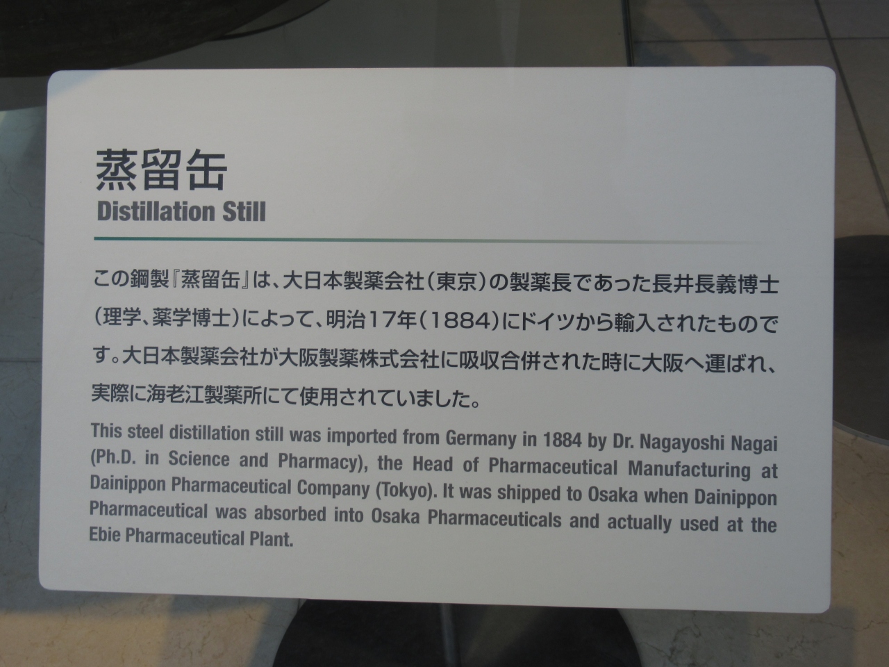 その他に昔の工場のジオラマ、長井長義博士がドイツから輸入した蒸留缶が展示されています。