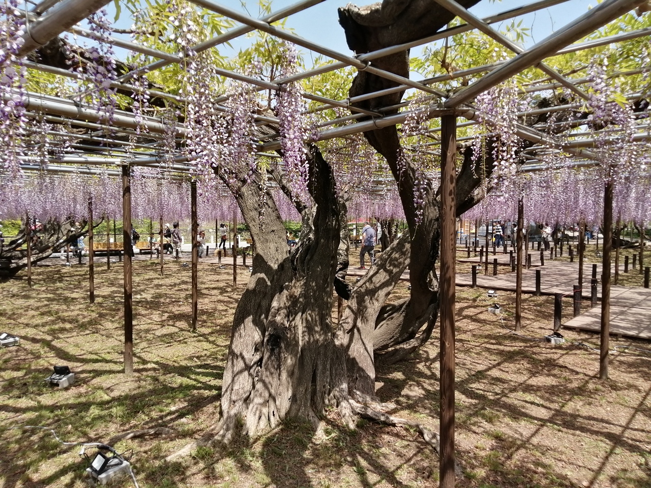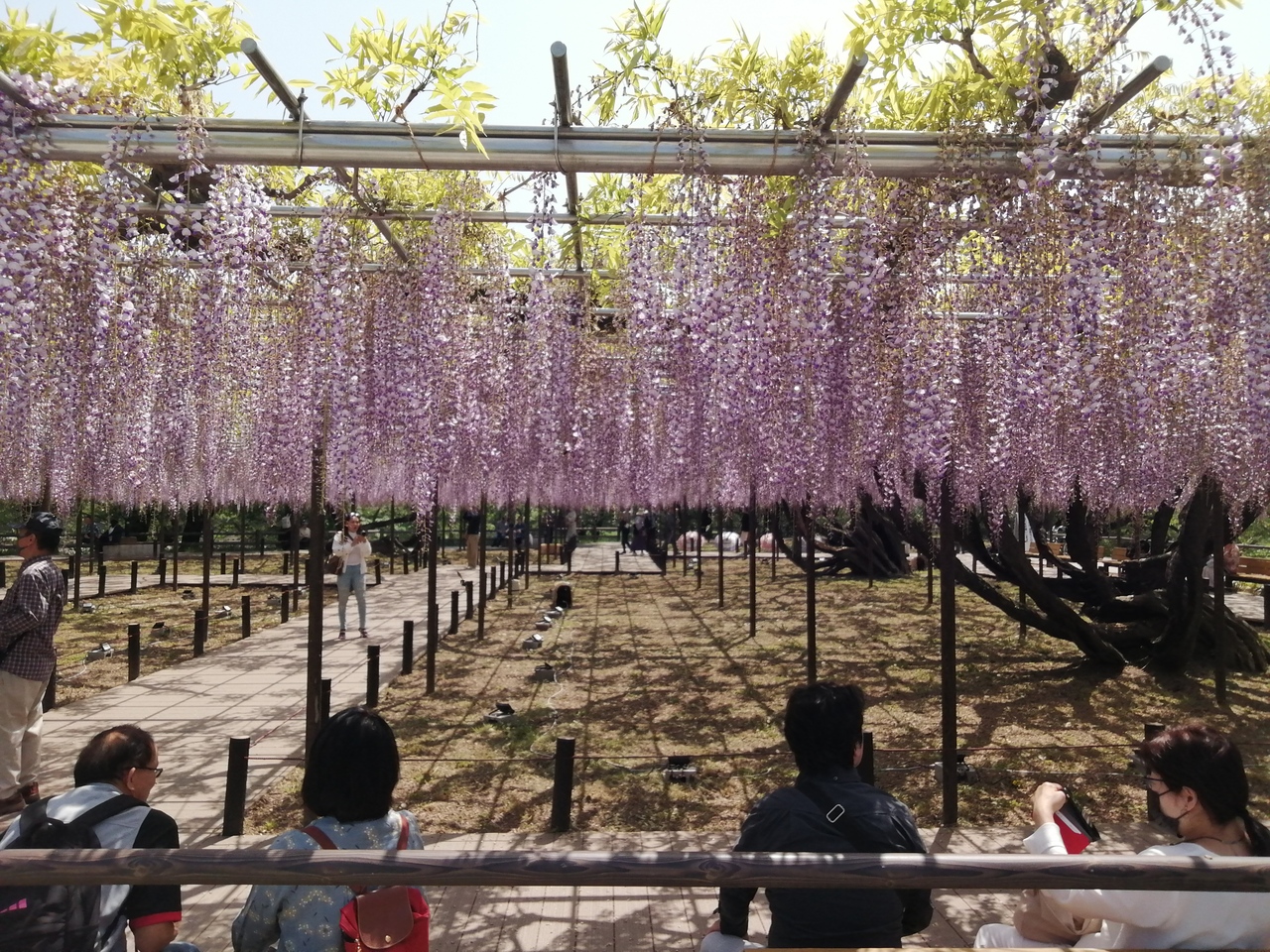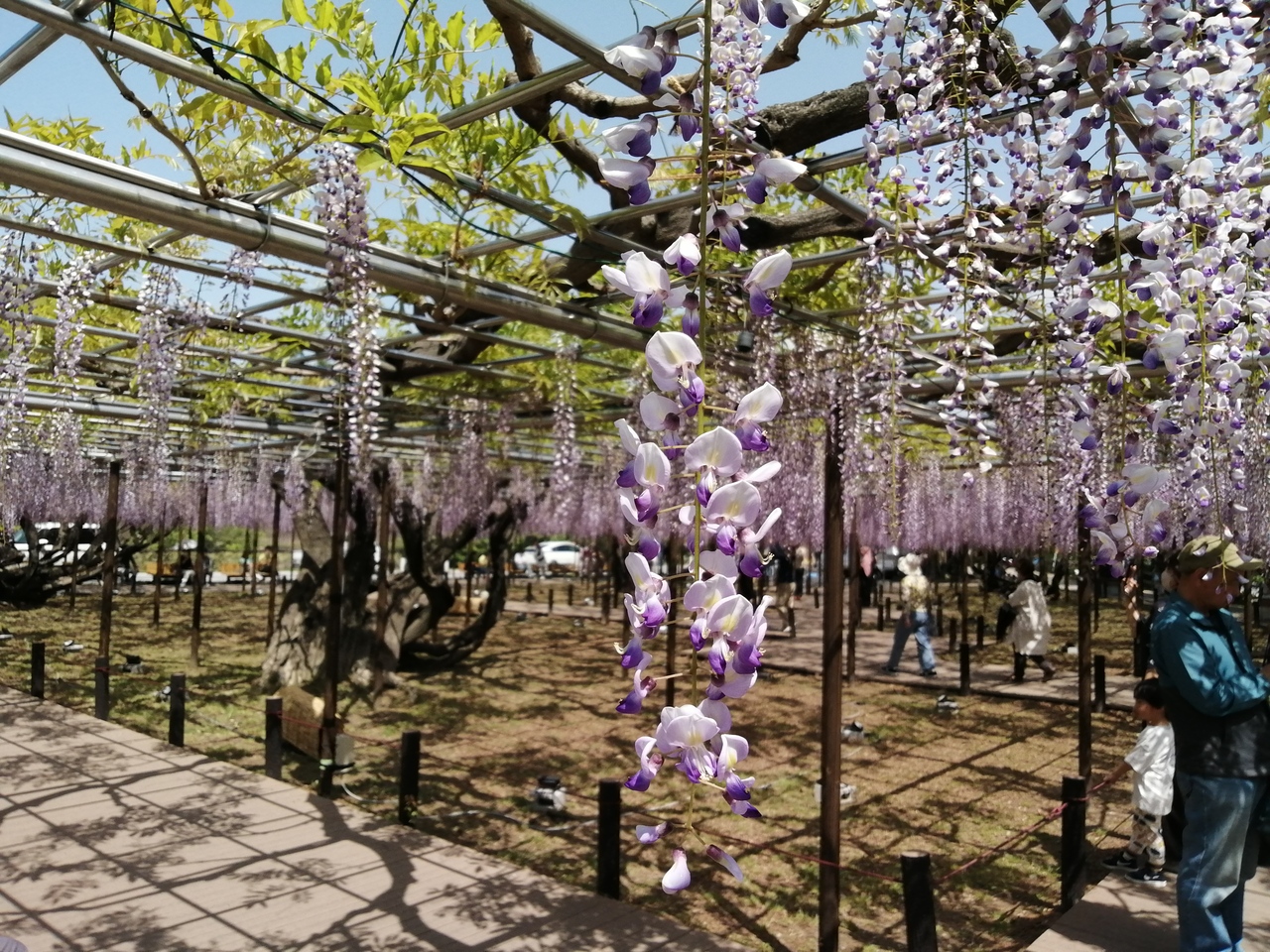 今年も岡崎公園の藤棚へ。かつての岡崎藩の石数から“五万石藤”と呼ばれています。私が訪れた日は8~9分咲きといったところ。藤の見頃は難しいです。花房の上から順に咲いていき、全て咲く頃には上の部分が萎れ始める場合もあります。それと天気の兼ね合い。最高の咲き具合でも天気が悪ければ見栄えは半減。そう考えると快晴の日の8~9分咲きならまずまずのタイミングだったかなと思います。美しい藤が見られました。