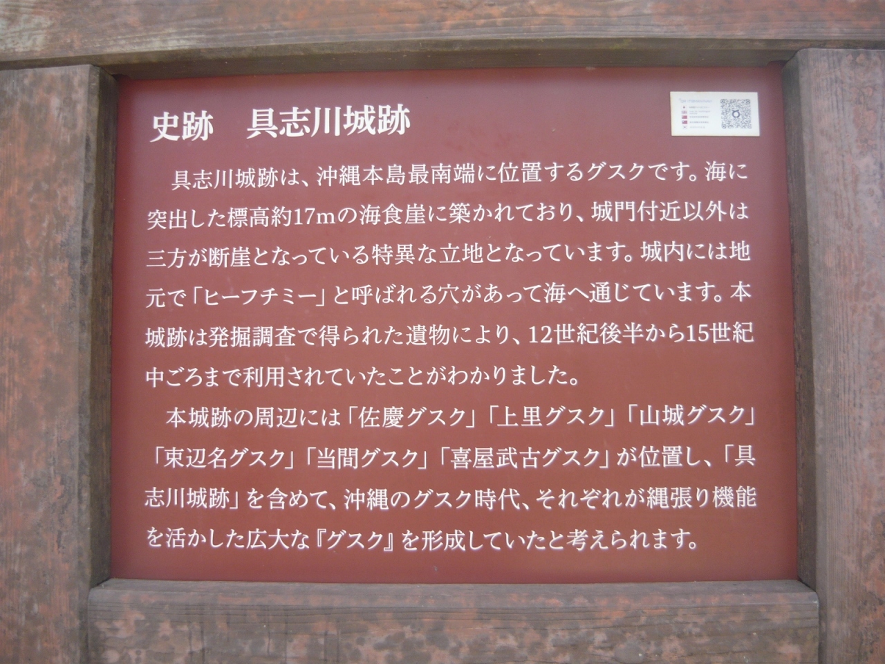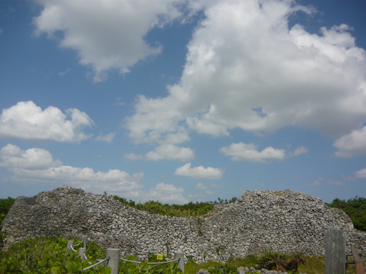 那覇から車でおよそ30分、15世紀頃に築造された城跡です。城跡と言っても建物などの遺構は無く、野面積みの石垣の一部しかしか残っていませんが、三方を海に囲まれた高台にあって太平洋を一望できる景色は素晴らしいです。城壁の復元工事も行われていて、石垣の高さや階段と武者走り、火吹き穴などの説明板もあり当時のお城の造りが判りやすくなっています。本島南部を旅されるときに天気が良ければ是非立ち寄られることをお勧めします。