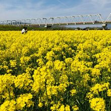 菜の花畑はサッカーグラウンド2面分くらいの広大な場所に真っ黄色な花畑が圧巻です。