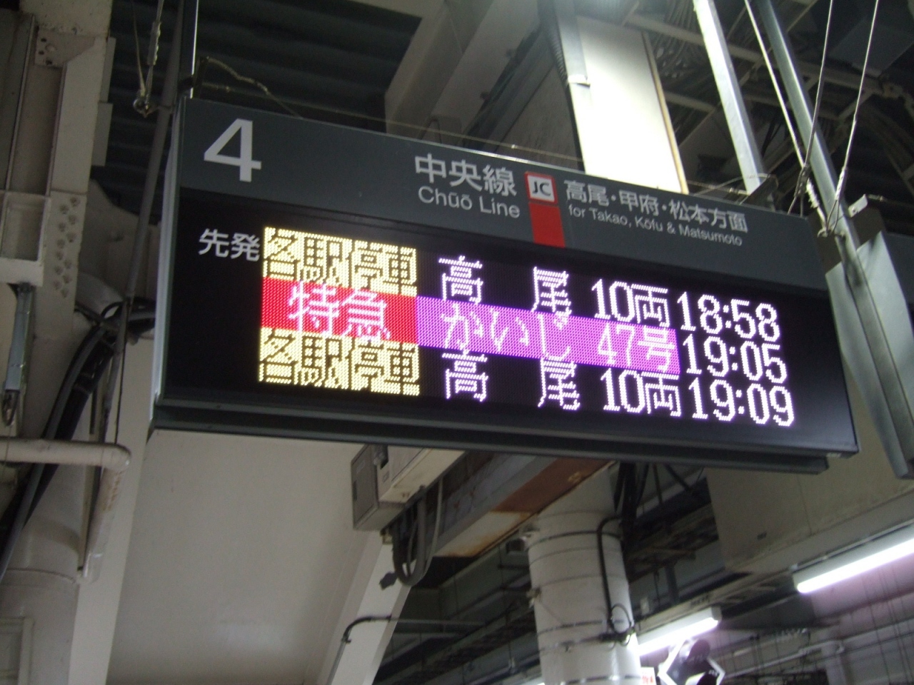 新宿から山梨方面を結んでいる特急列車。松本方面の「あずさ」とは名前が分けられています。