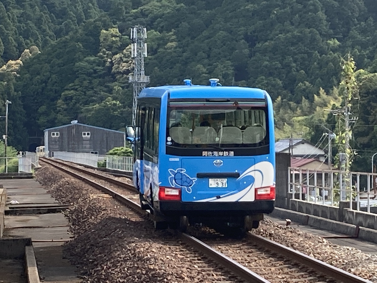 道路を走っていたバスが突然、30秒のモードチェンジを経て、鉄道線を走るのは、趣味人としては楽しい。休日のみ運転の室戸岬からのバス(列車)に乗ったが、物珍しさも手伝って満席。しかし、トヨタ・コースターベースに鉄道としても走行可能なシステムを追加した車両は定員が座席18人、立席3人と小さく、基本的に予約制(空席があれば乗車可能)であるので、地域の足というよりは観光の足になっている気もする。取り敢えず、廃線からは免れたが、今後、地域の足としては諦めるのか、今後の推移を見ていきたい。