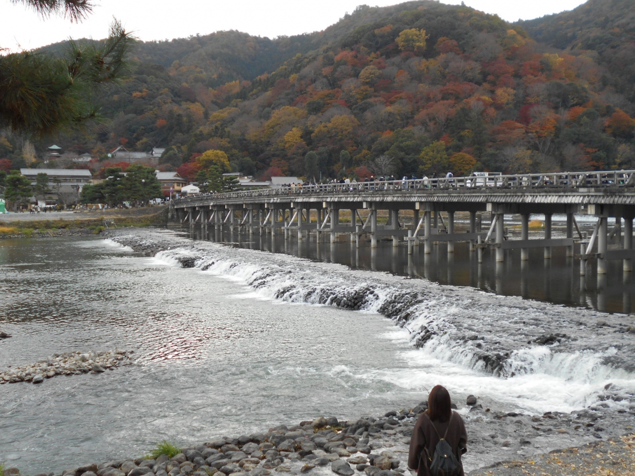 渡月橋は京都の観光地である嵐山のシンボルともいえる桂川に架かる長さ155mの橋です。
