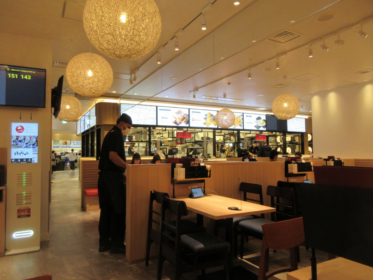 以前は関空3階の一般フロアにあったのですが、改装後国内線出発フロアのセキュリティエリアを抜けた後のレストラン・ショップエリアに移動していました。新しいお店は、従来のぼてぢゅうのメニューだけでなく、ご当地ラーメンやうどん、丼ものなどもメニューに加わっていましてバラエティーが増えています。値段は全般的に高めですが、以前のぼてぢゅう同様プライオリティーパスが使え、3400円分までの食事ができます。
