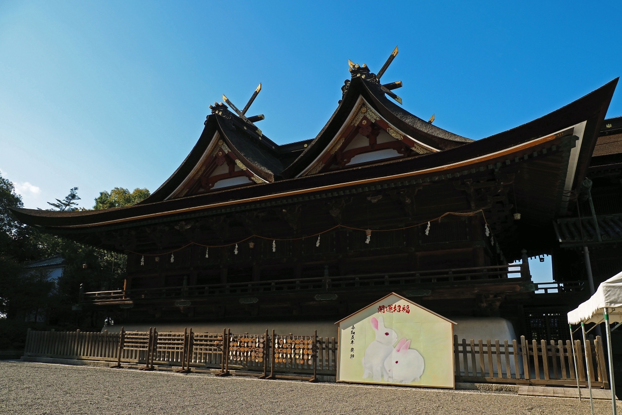 全国でもここでしか見られない吉備津造りと呼ばれる本殿・拝殿を構える:吉備津神社