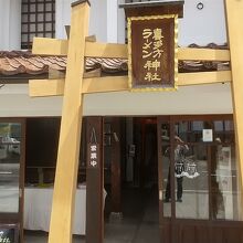 レトロ横丁商店街の中心部、蔵のまち案内所の隣にあり、古民家にラーメンを祀る神社をおいています。観光目的なので、本物の神社ではないものの、御朱印も販売しています。
