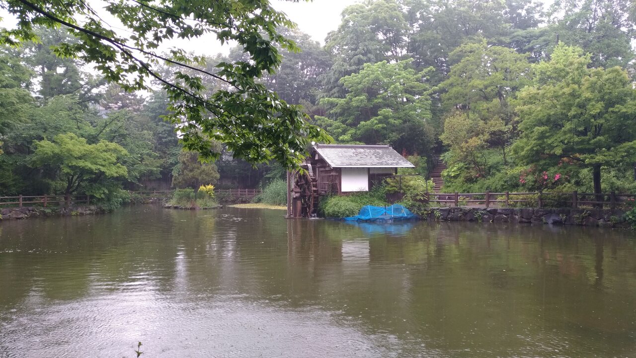 現在では、日本屈指の高級住宅地として知られる渋谷区松濤エリアにある公園です。周りは高級自宅地で飲食店はもう少し渋谷エリアに近い場所にあります。広い公園ですが、江戸時代には佐賀鍋島藩の藩邸があった場所だそうです。園内に広がる池と水車がある風景が印象的でした。