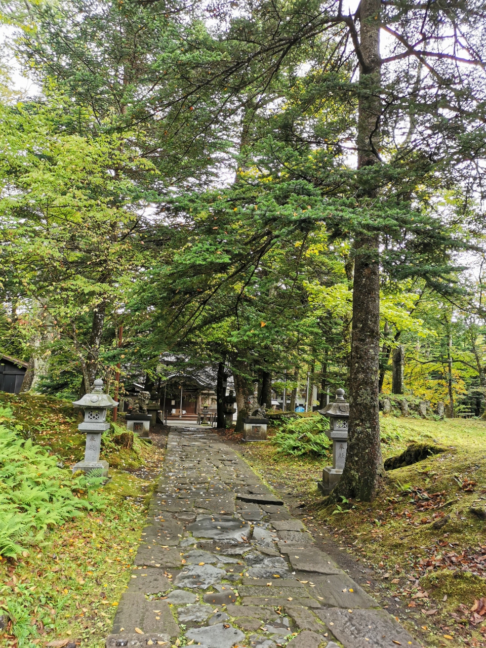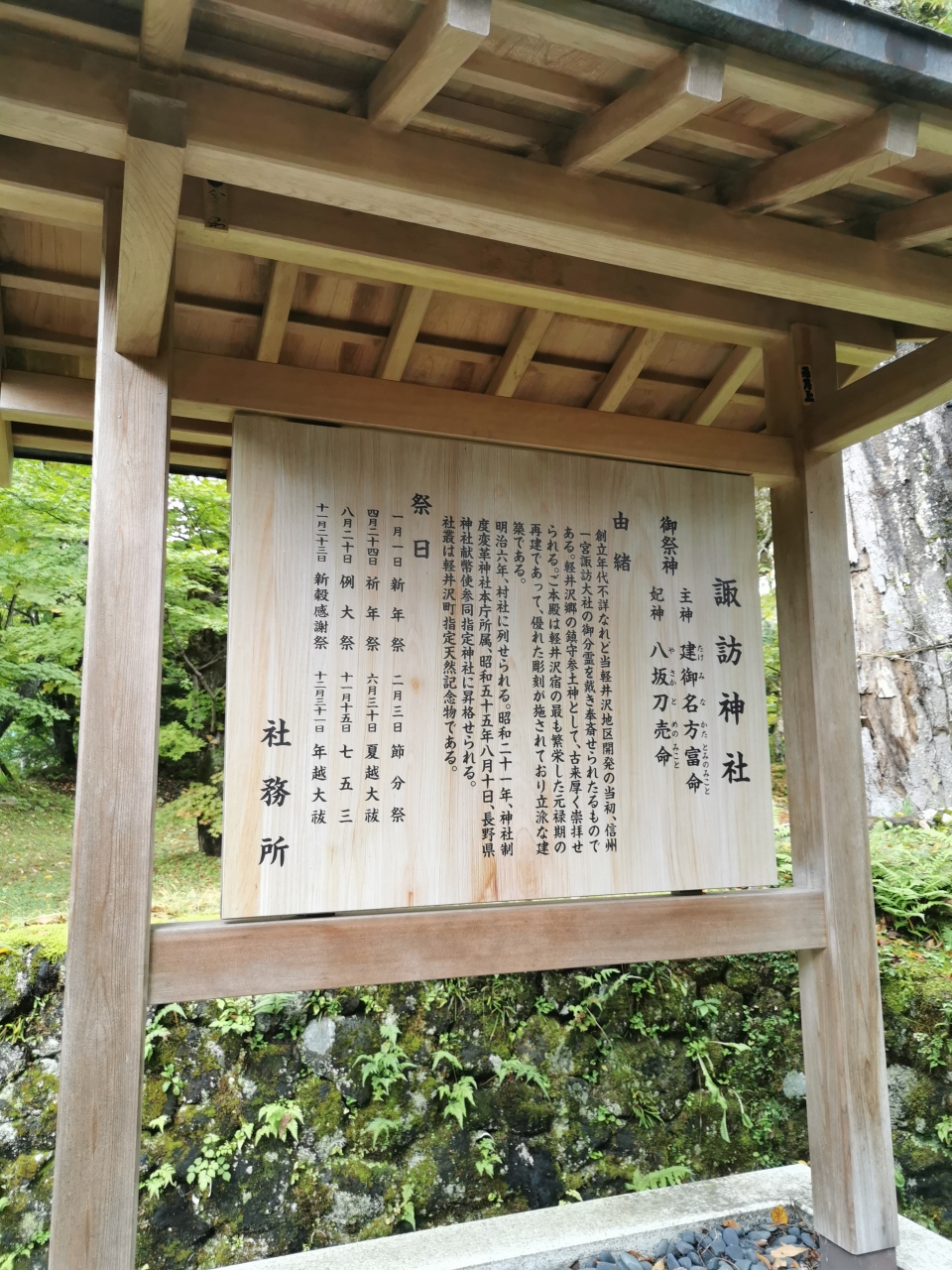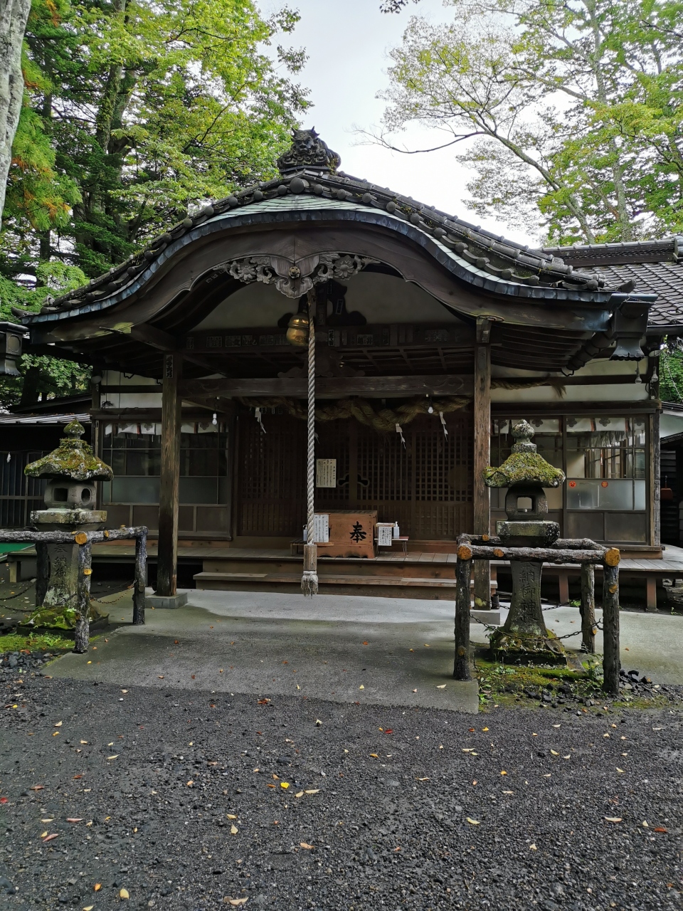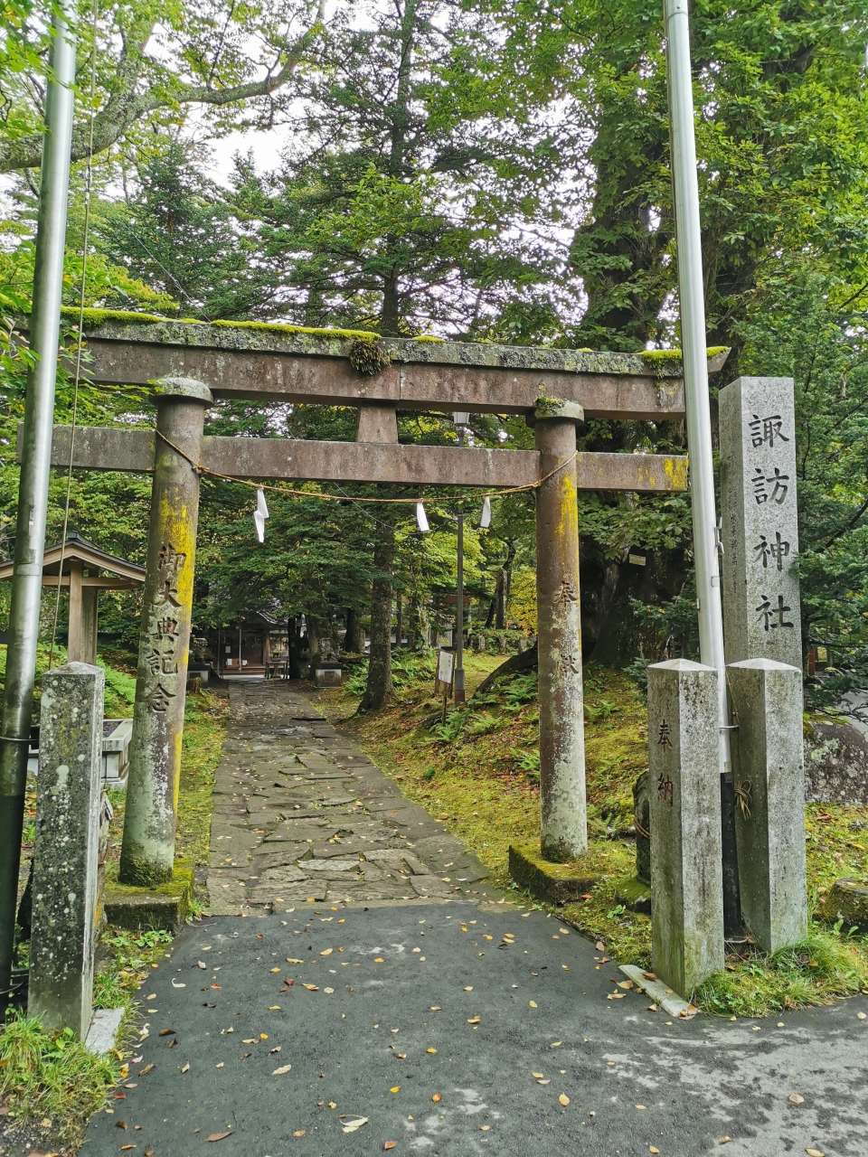 軽井沢会テニスコートと軽井沢ユニオン・チャーチの間の道を抜けると軽井沢の諏訪神社があります。苔むした石製の鳥居をくぐると参道です。手水場は水が止められてました。二股の神樹守を超えると本殿です。銀座通りから少し離れているせいかとても静かでした。落ち着いて参拝できました。