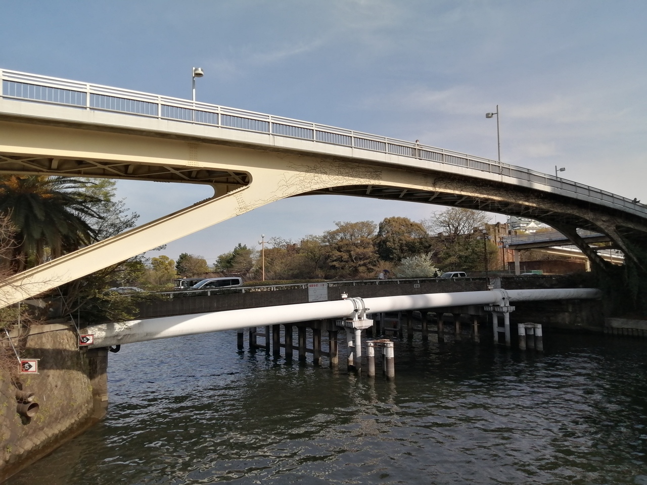 京橋は地名かと思っていましたが、実際にその名の橋があったんですね。場所は天満橋駅と京橋駅の間、大川と寝屋川の合流地点付近にかかる橋です。地名の由来となったんだと思います。なんの変哲のない橋ですが、かつては大阪と京都を結ぶ京街道の起点とされた橋でもあります。江戸時代には長さ100mの橋だったようです。