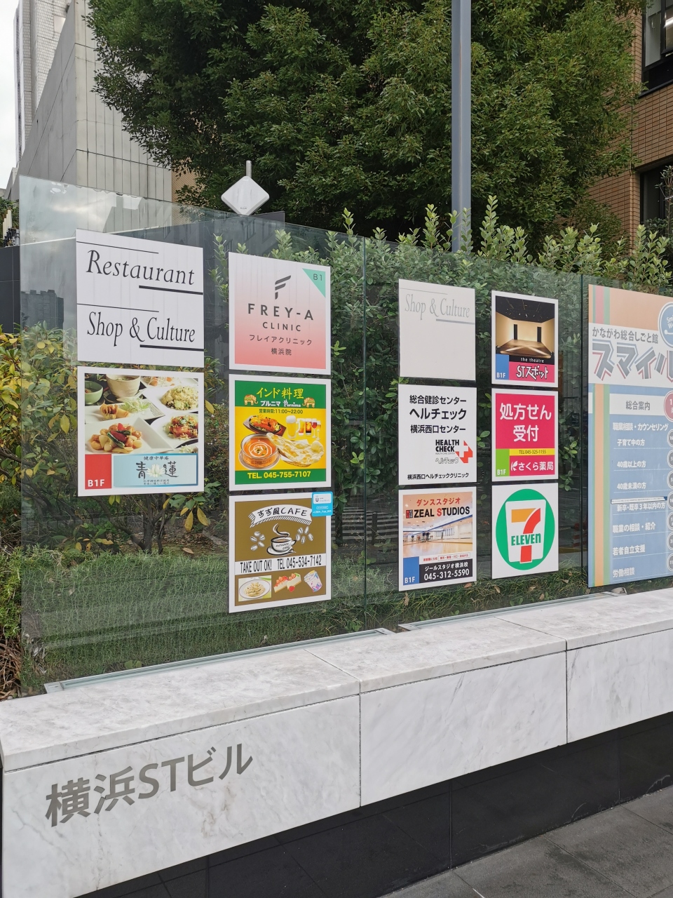 健康診断で横浜STビルに行きました。横浜駅からは歩いて10分程度は歩きます。一般的なオフィスビルですね。 地下1Fはレストラン街になっていて、中華料理や印度料理のお店が入っています。特に特徴はないですが、便利ではあります。