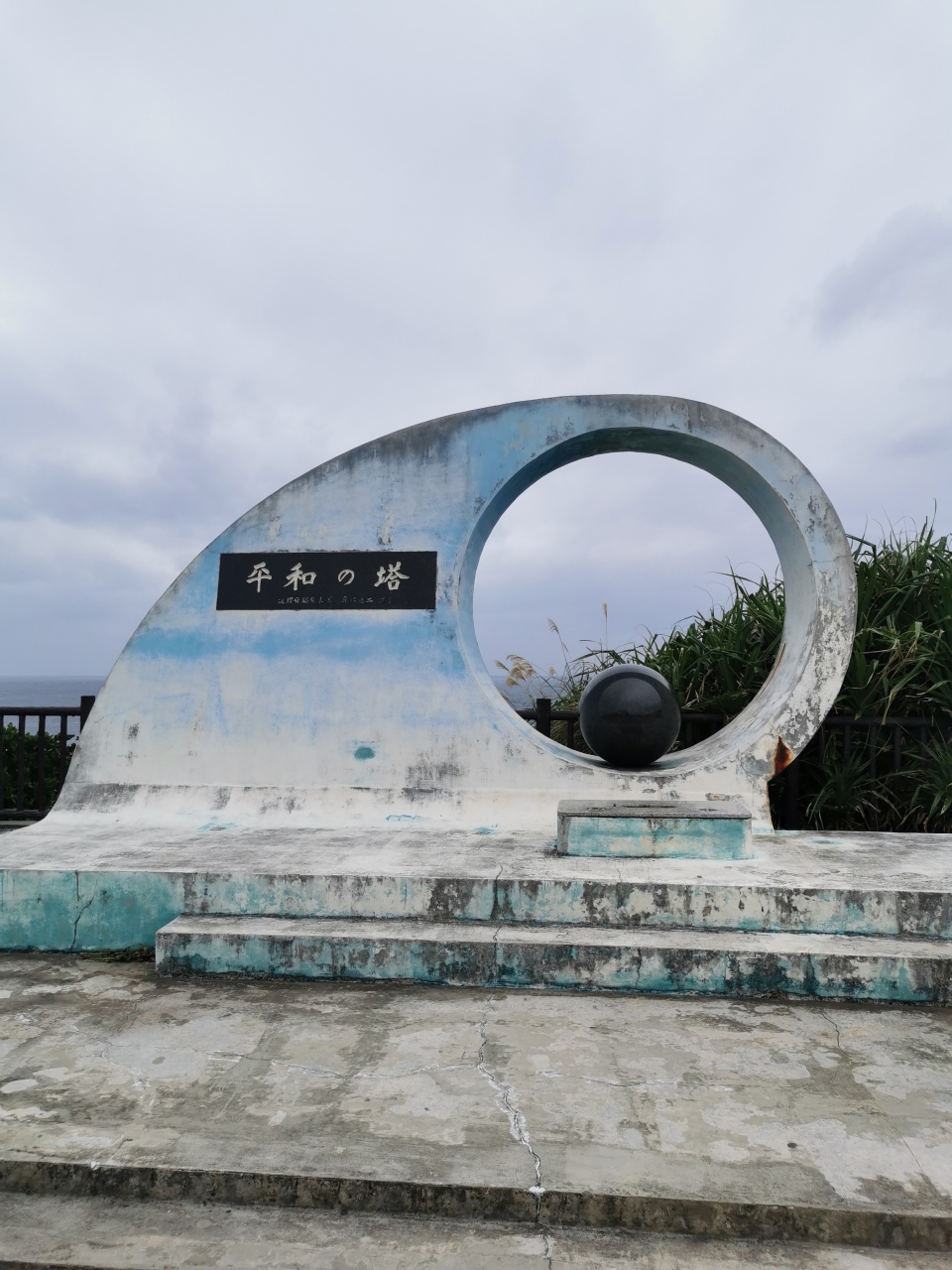 喜屋武岬に行きました。岬の先端は沖縄本島の南端ですので、目の前は海が一望です。平和の塔はその岬の先端に海を背にしてあります。太平洋戦争の激戦地との事。いまは綺麗で平和な場所です。平和の塔の目の前には無料の駐車場があります。レンタカーでないとちょっと厳しい場所です。