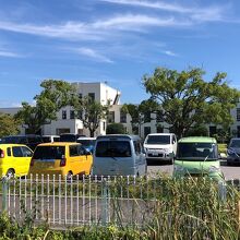 近江鉄道・豊郷駅から徒歩10分ぐらいです。白壁・2階建ての大きな校舎が見えてきます。近江商人だった丸紅の専務の寄贈で建てられた、豊郷小学校の旧校舎です。当時は、東洋一の小学校と呼ばれていました。駐車場が100台あるのもすごいです。