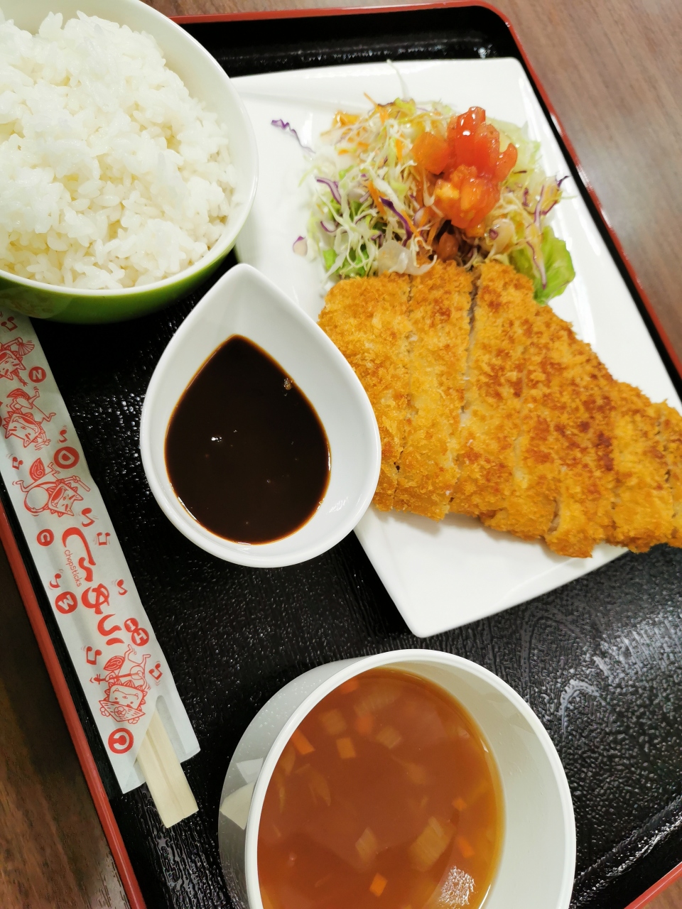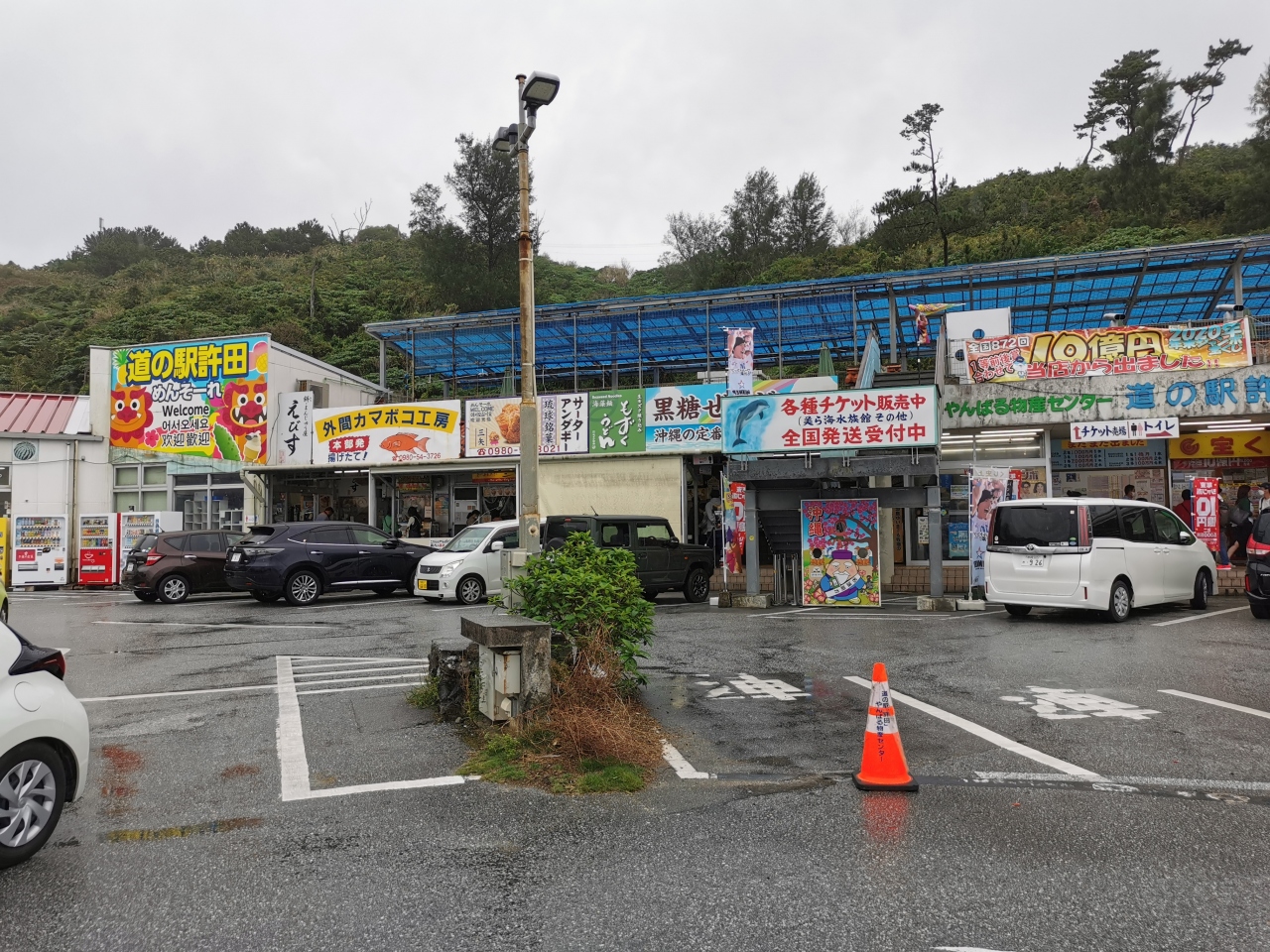 沖縄美ら海水族館からの帰り道。名護市を過ぎたあたりの「道の駅 許田」で昼食休憩しました。国道と海に面していて入りやすい道の駅。駐車場はやや間隔が狭くて注意が必要。フードショップが多数並んでいてお客様が多数。施設内のフードコートでアグー豚のとんかつをいただきましたが、とても美味でした。