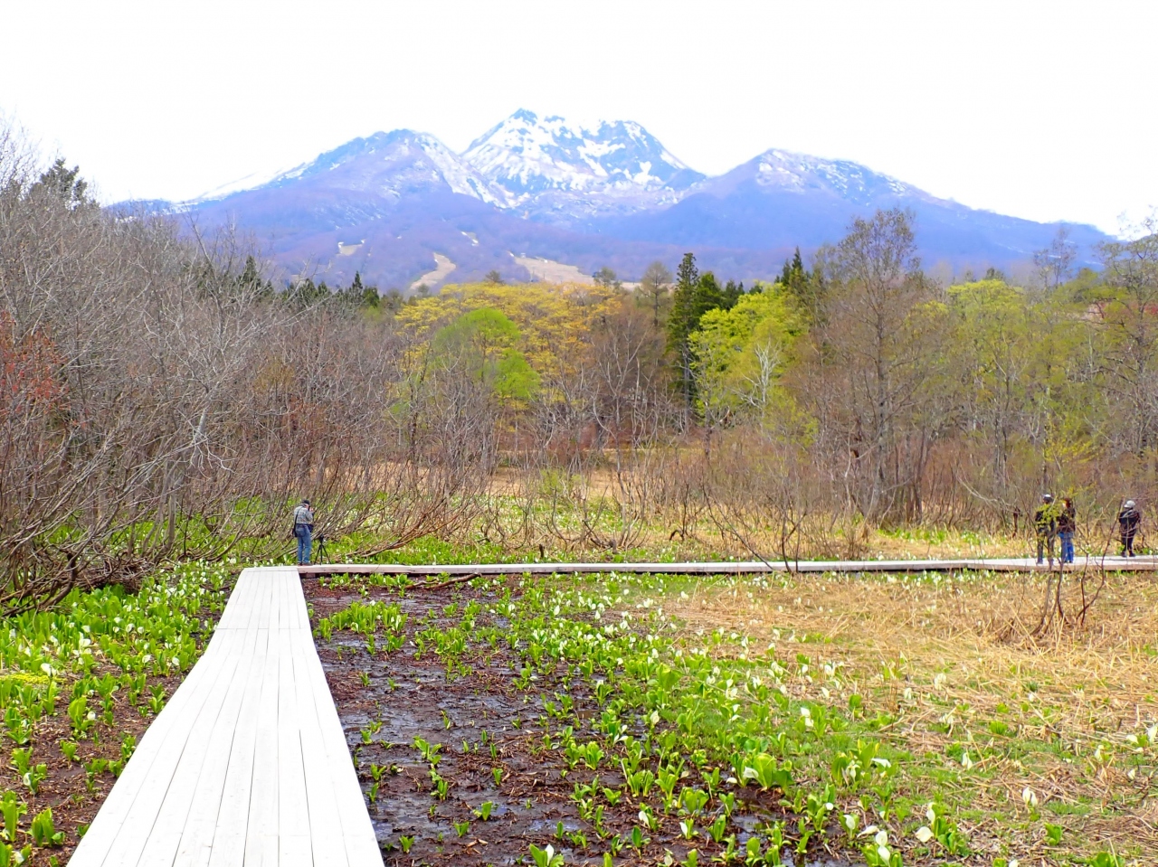 4月末に水芭蕉を見てきました。池の周りの遊歩道の奥に木道が整備されていて、水芭蕉をすぐ近くで眺めながら散歩を楽しめました。池のほとりからは水面に映る妙高山や黒姫山を眺めることができます。駐車場にはビジターセンターがあり、トイレを利用できます。地形や動植物に関する展示物も楽しかったです。