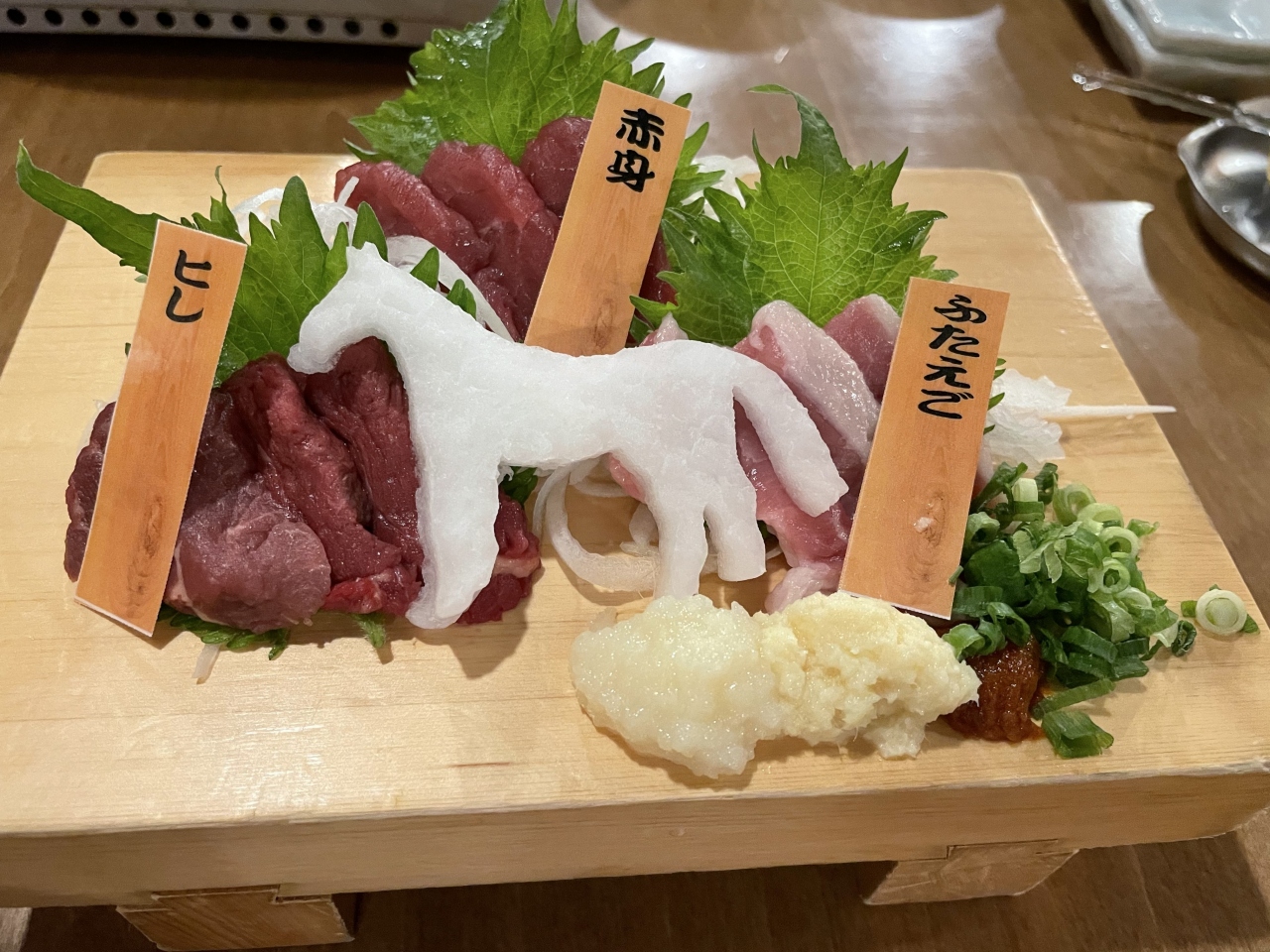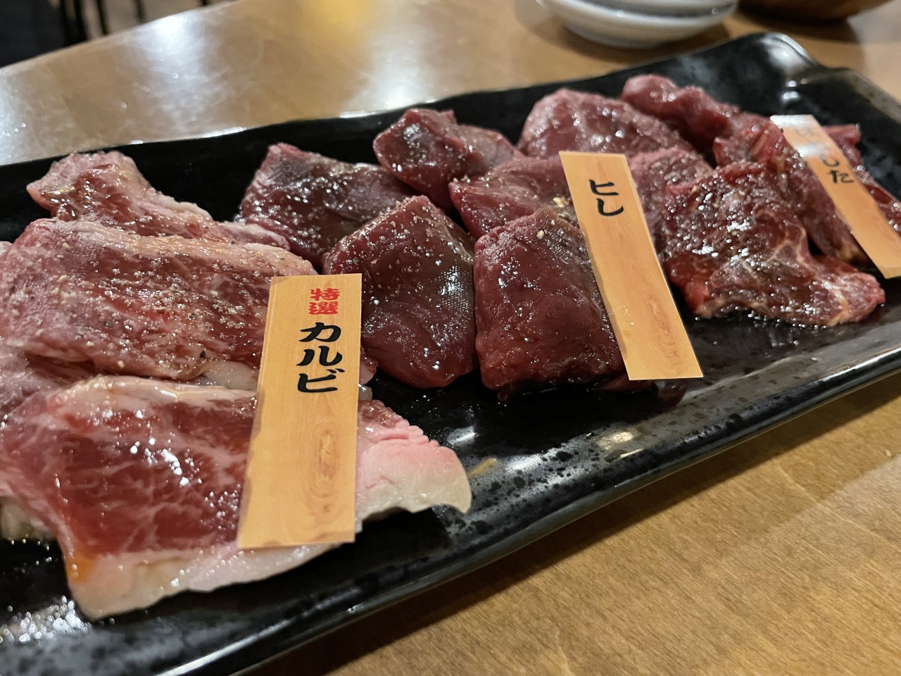 馬刺しは臭みもなく良い感じ。焼き肉はカルビとヒレともう一つ名前を忘れたけど首の部位。こちらもクセがなくどれも美味しかったですが、一番は首の部位ですね。