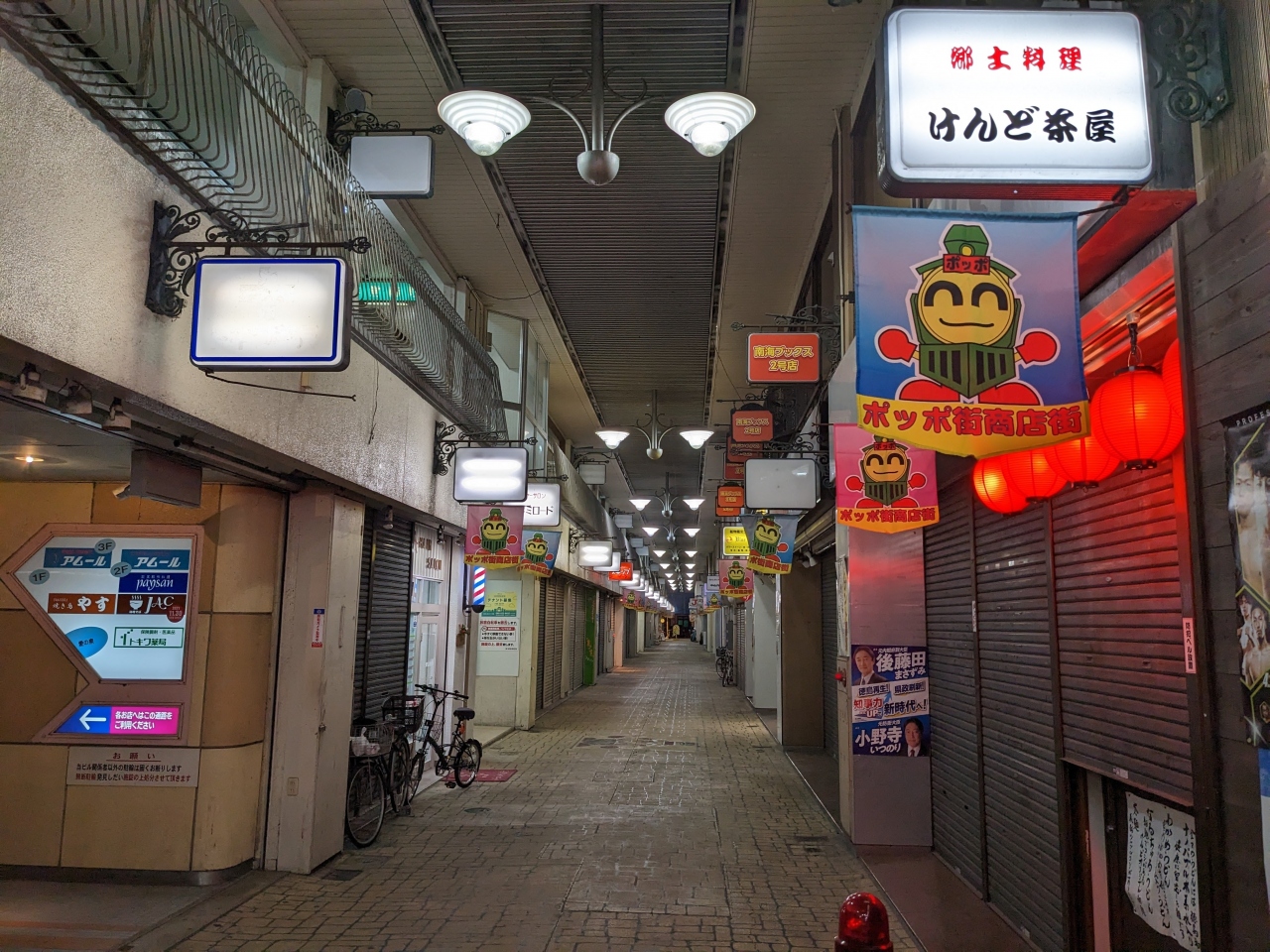 徳島駅前にある昭和から続くアーケード街。残念ながら地方都市あるあるでシャッター街と化しており、空いているお店はざっと4割ぐらいか。商店街の端っこにカレー屋があって行ってみたがなかなか良かった。徳島はそごうが撤退したりと、結構元気がなくなっている感じなので なんとか頑張ってもらいたい。