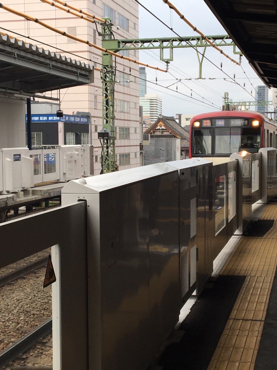 京浜急行線の羽田空港行きに乗車しました。休日だったので混んでいて、残念ながら座れませんでしたが、車窓の景色も悪くありませんでした。ホームにはホームドアが設置されていて安全対策もされていて安心です。空港に乗り入れしている唯一の路線です。