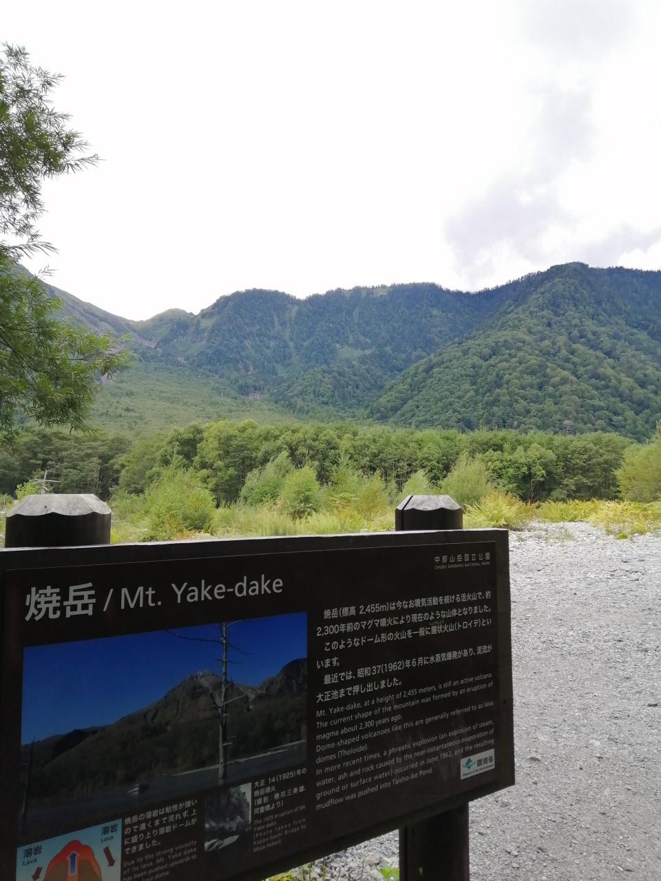 標高2455mの焼岳は活火山で、1962年の水蒸気爆発の際に泥流が大正池まで押し出したそうです。