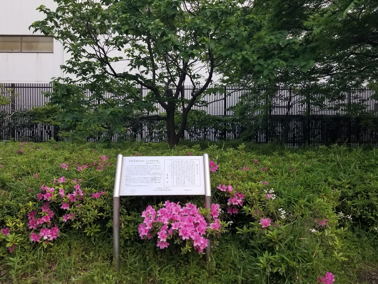 礫川公園の中にある 幸田文ゆかりの「ハンカチの木」。