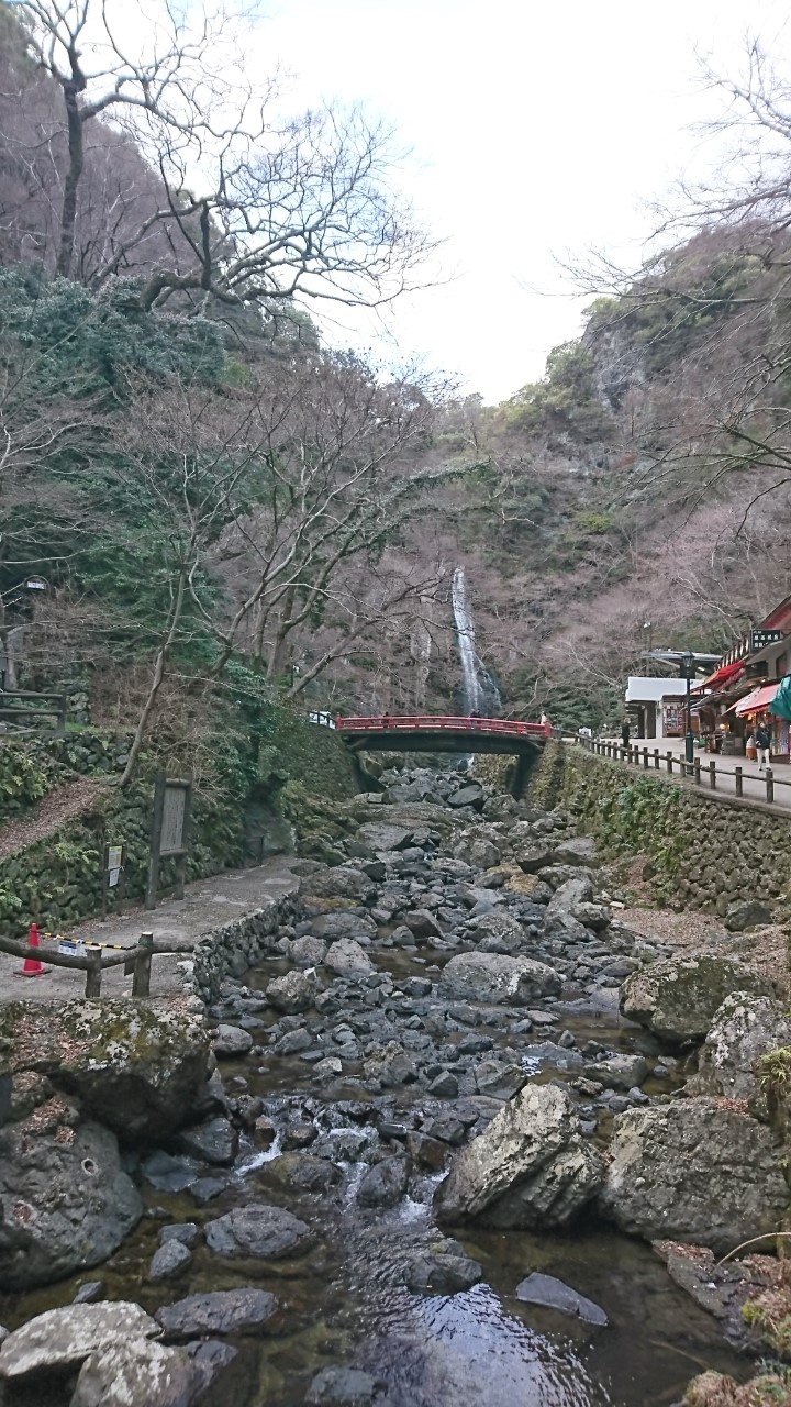 箕面公園の奥にある「日本の滝百選」にも選ばれている大滝です。春休みの平日午後、まだ桜には早い時期でしたがそれなりに観光客が訪れていました。滝の前のベンチに座って流れ落ちる水しぶきを眺めているととてもリラックスできました。