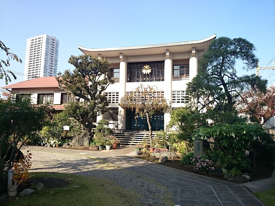 京浜急行新馬場駅からすぐ、品川区南品川1丁目の第一京浜沿いに建つ顕本法華宗系単立の寺院です。長享元年(1487年)の創建と伝えられています。仏教寺院とは思えない近代的な本堂でしたが、建物の中に古い本堂が保存されているのだそうです。